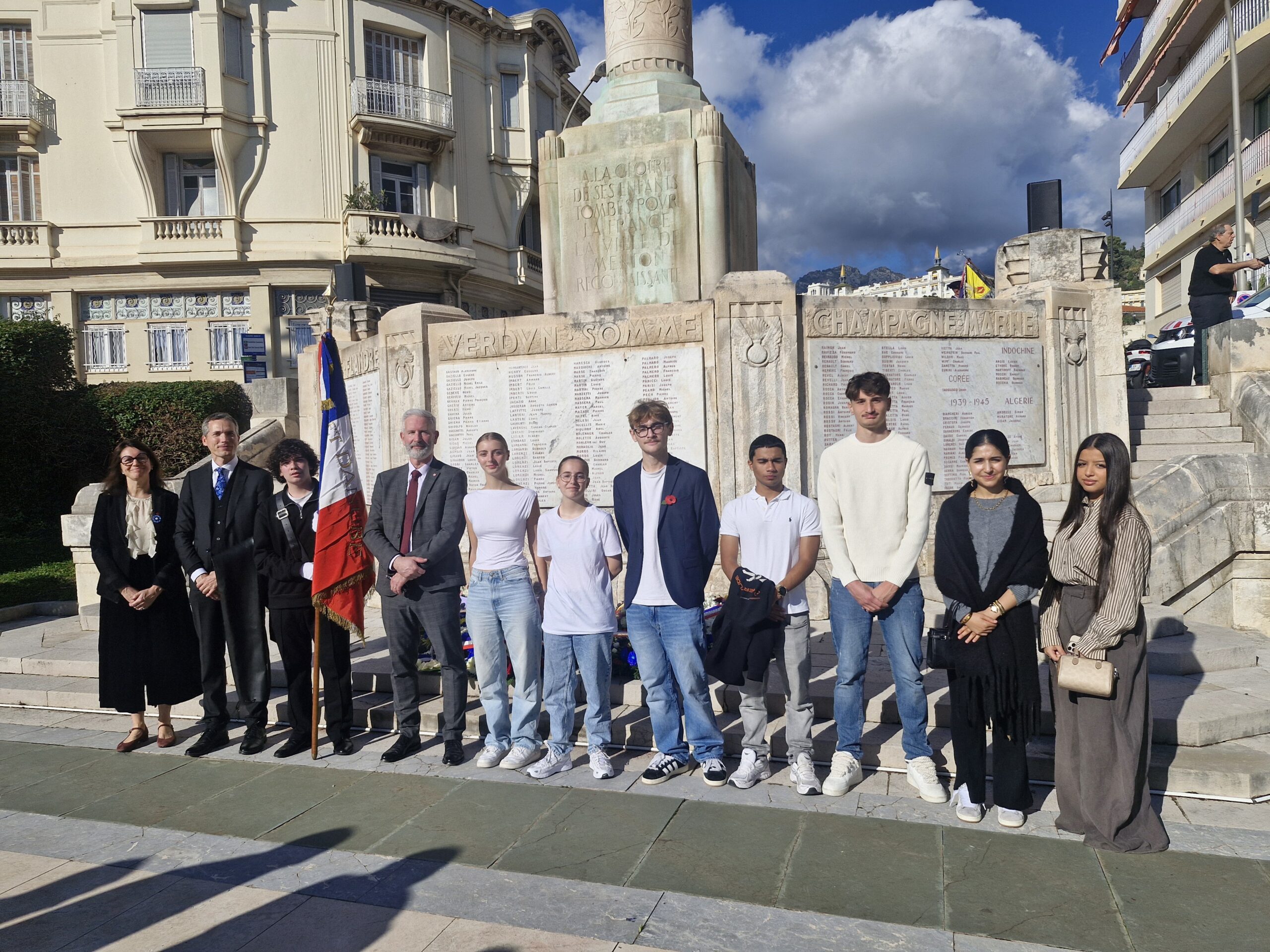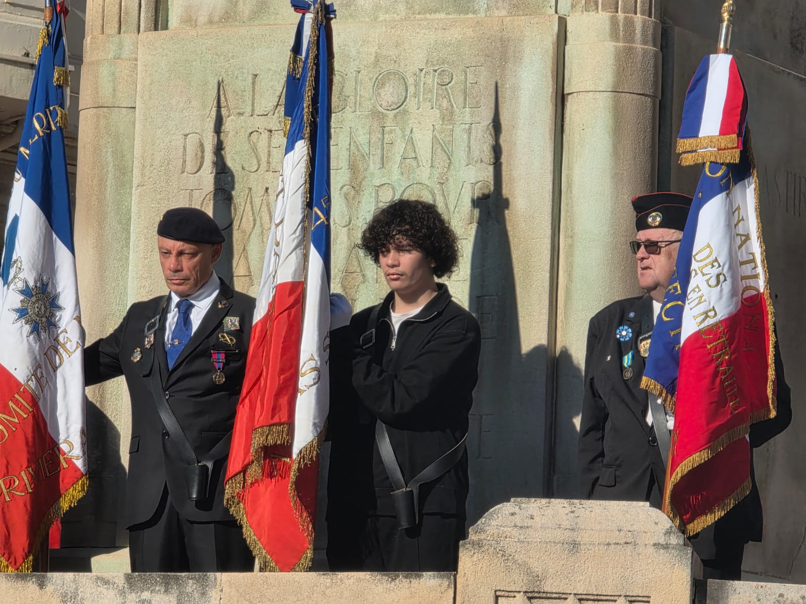 Les élèves qui participent au projet Classe de défense et au groupe jardin de la Paix ont participé à la commémoration du 11 Novembre. Camil a porté le drapeau confié par les anciens combattants de la 1er armée.