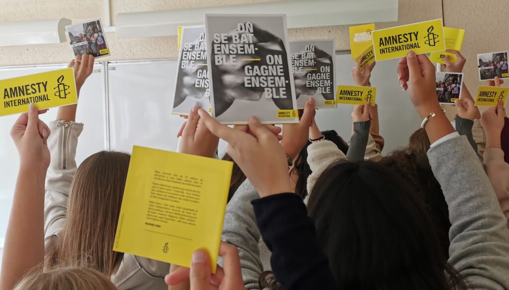 » On 18 October 2021 we attended an Amnesty International conference led by a speaker. First of all, what is Amnesty International, it is a movement of 10 million people who fight for human rights and whose slogan is « we fight together, we win together ». Their main belief is that when human rights are at stake, every fight deserves a victory and their main mission is to fight relentlessly until human rights are respected everywhere and their strength is to win every fight through the strength of the collective.