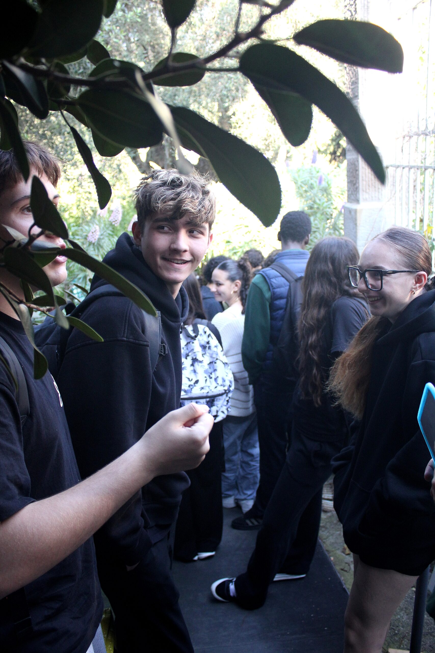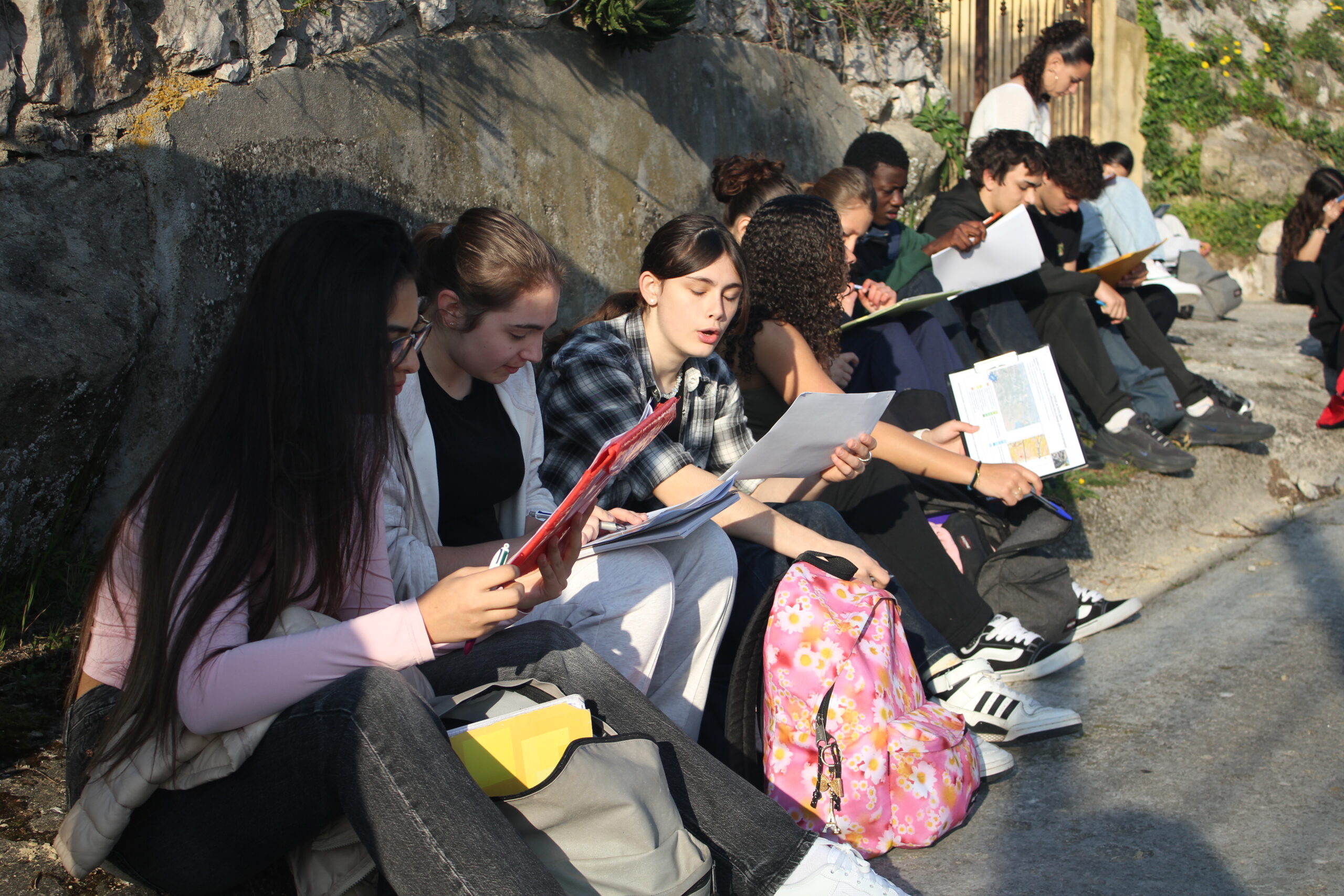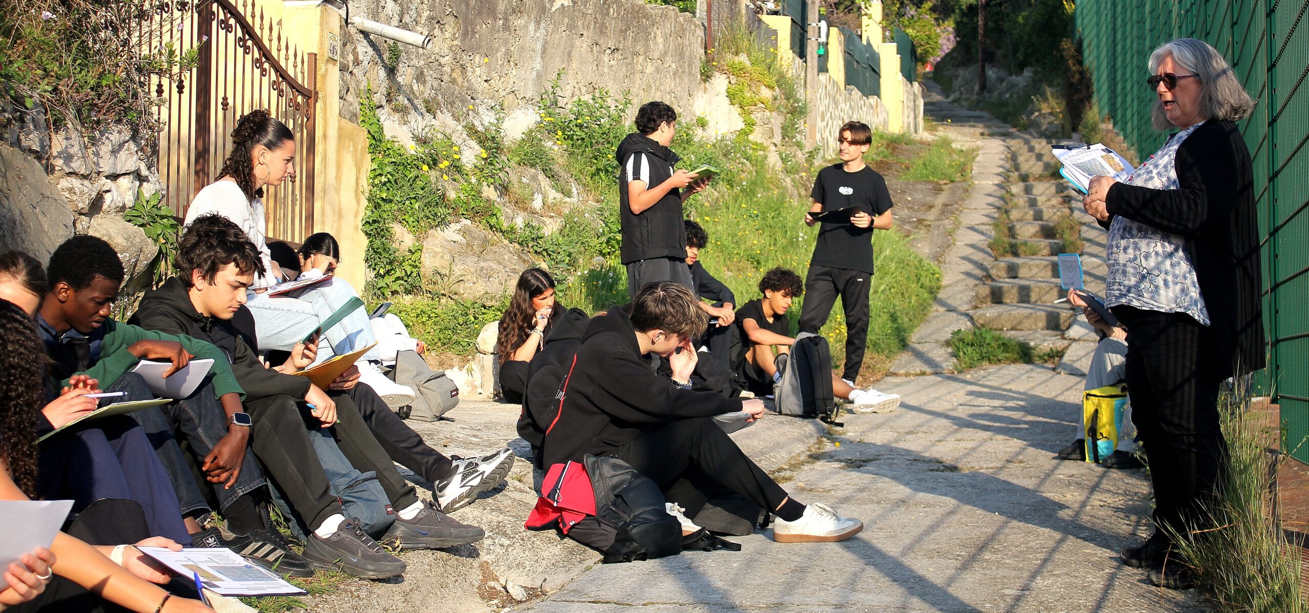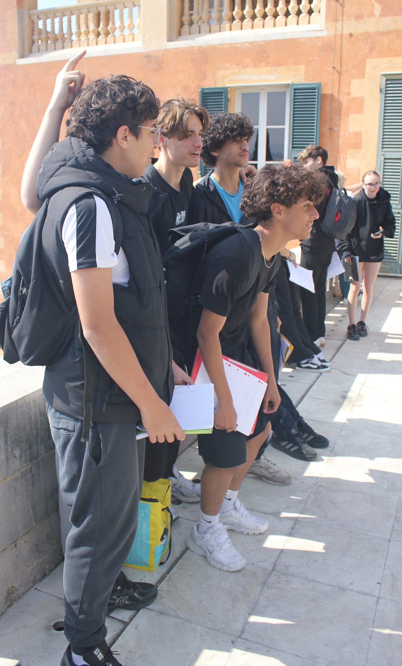 Puis, après un pique nique sous le sous la canopée, ce fut le moment de faire parler les roches aux Giardini Hanbury où plis, nummulites et roches carbonatées ont livré leurs secrets afin de reconstituer une partie de l’histoire géologique de notre secteur. Cette année encore, une belle surprise s’est offerte au groupe, puisque des élèves ESABAC du lycée APROSIO de Vintimille attendaient les visiteurs pour une visite explicative EN FRANÇAIS !!!! Merci à eux, ils ont impressionné les élèves ESABAC du Lycée Curie.