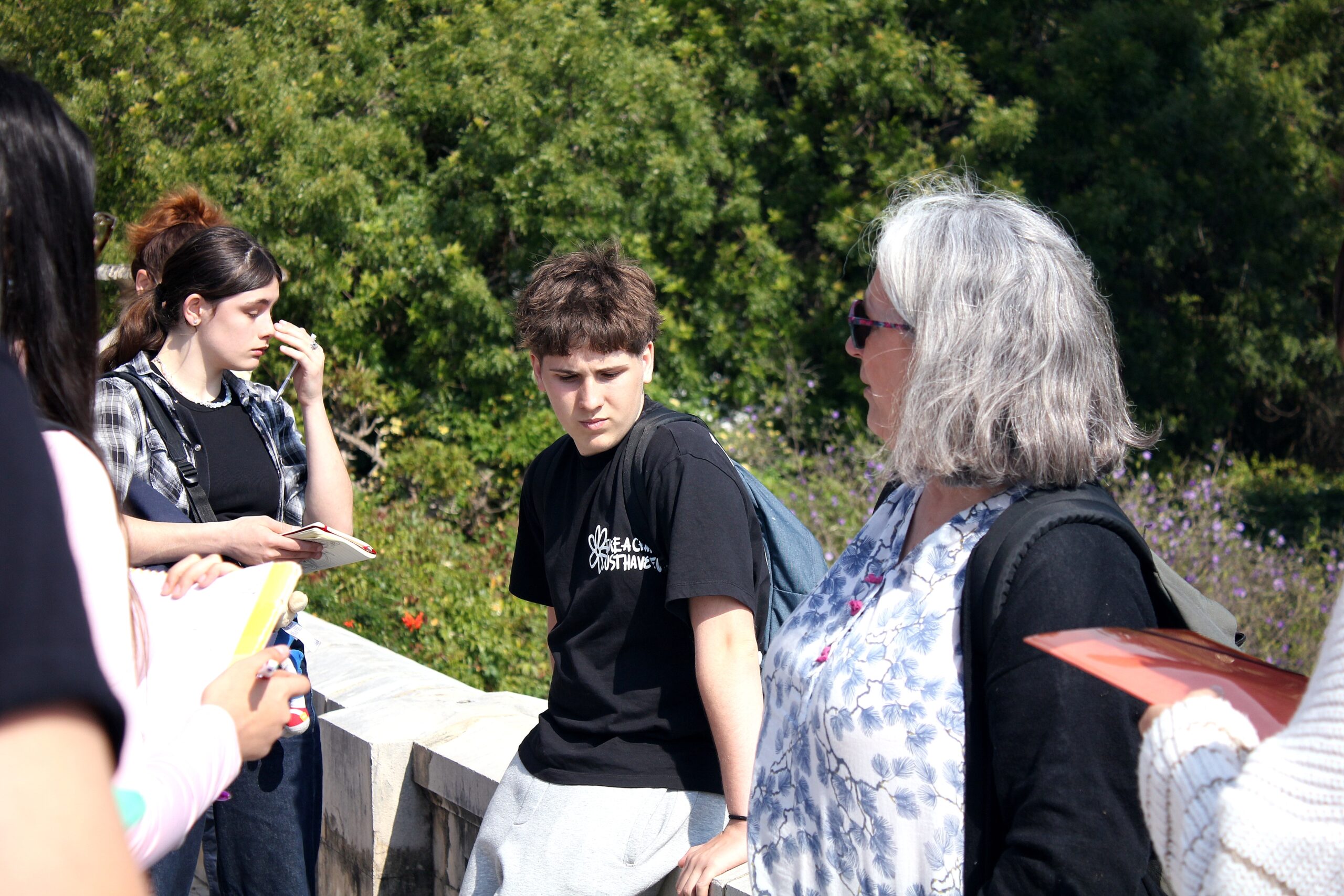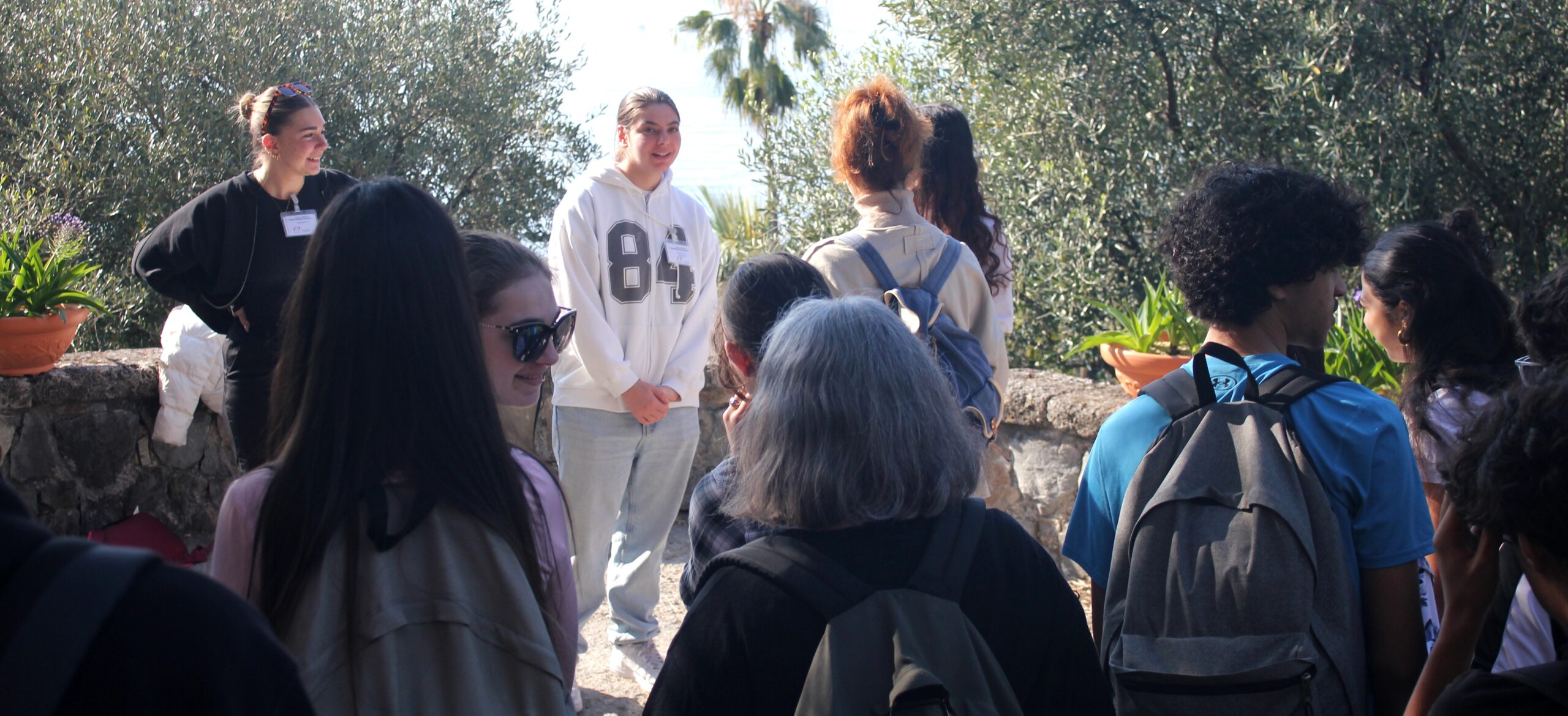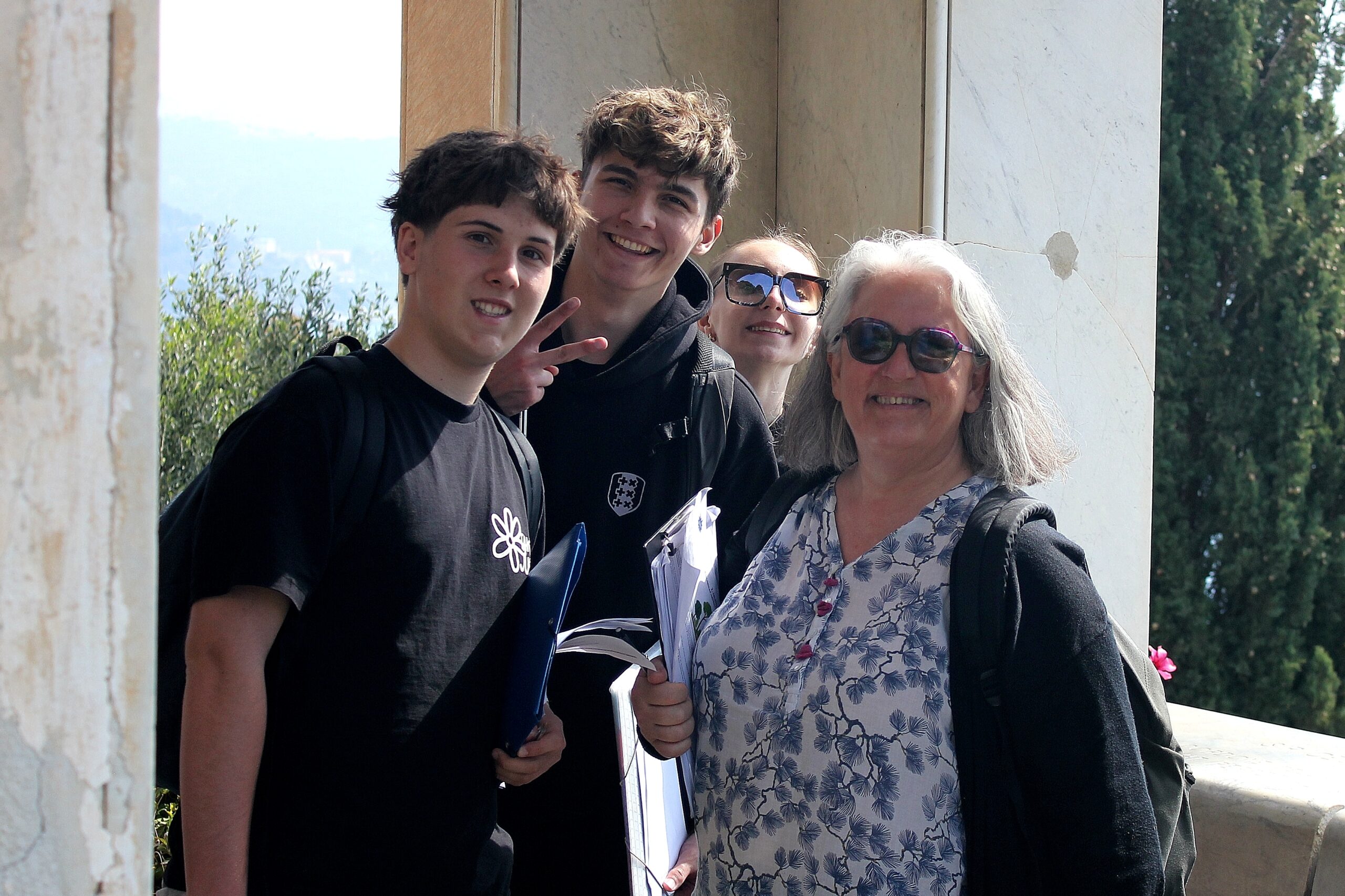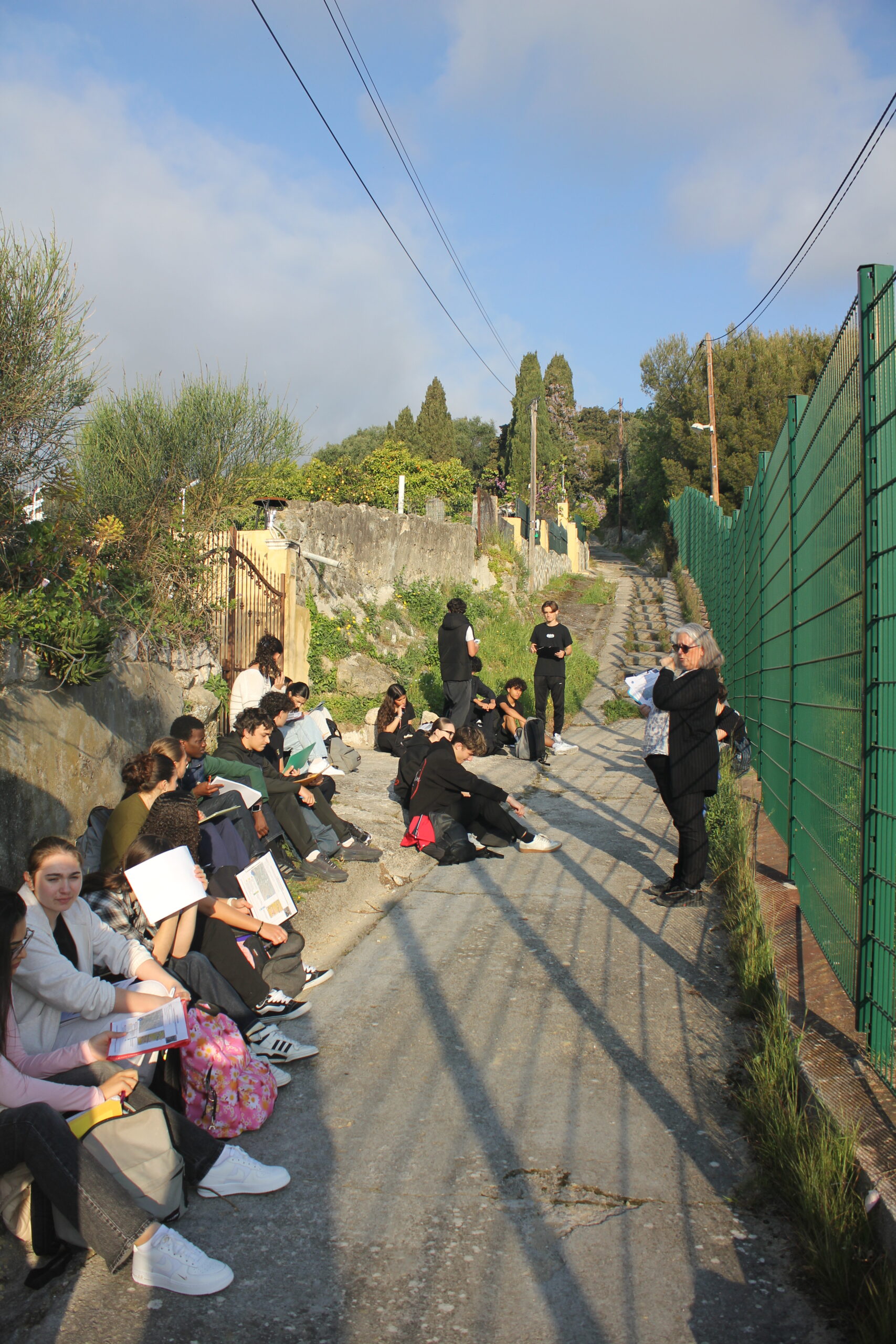 Puis, après un pique nique sous le sous la canopée, ce fut le moment de faire parler les roches aux Giardini Hanbury où plis, nummulites et roches carbonatées ont livré leurs secrets afin de reconstituer une partie de l’histoire géologique de notre secteur. Cette année encore, une belle surprise s’est offerte au groupe, puisque des élèves ESABAC du lycée APROSIO de Vintimille attendaient les visiteurs pour une visite explicative EN FRANÇAIS !!!! Merci à eux, ils ont impressionné les élèves ESABAC du Lycée Curie.
