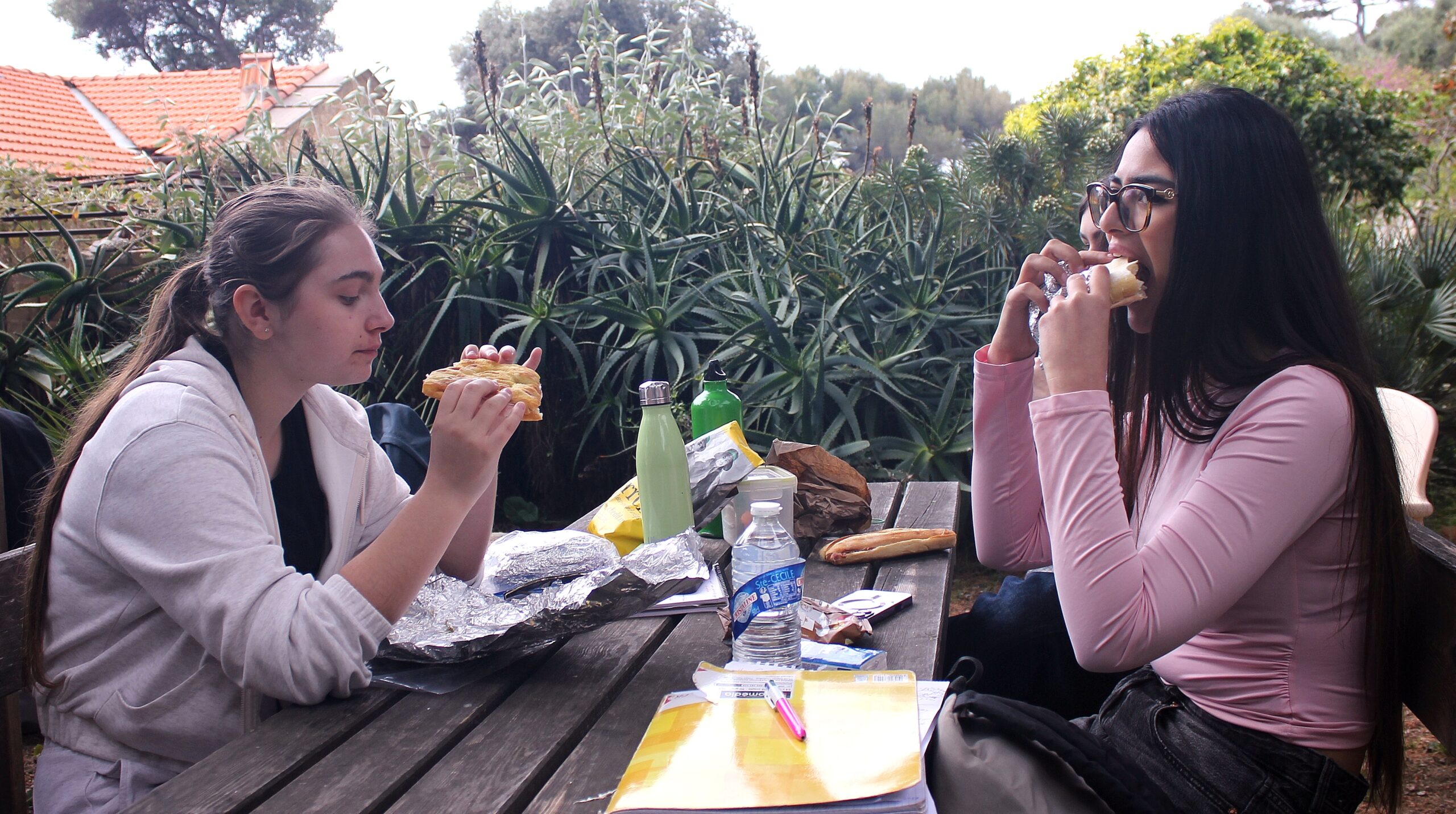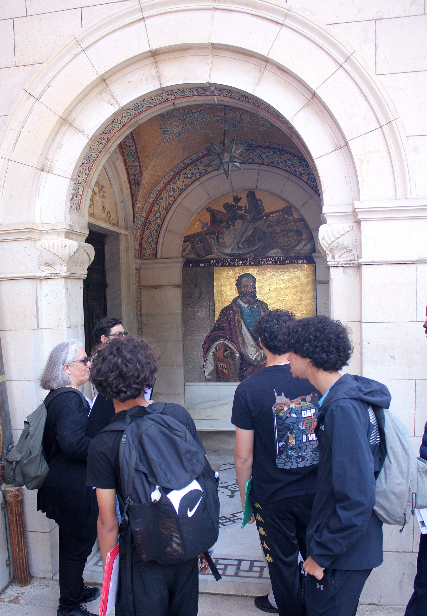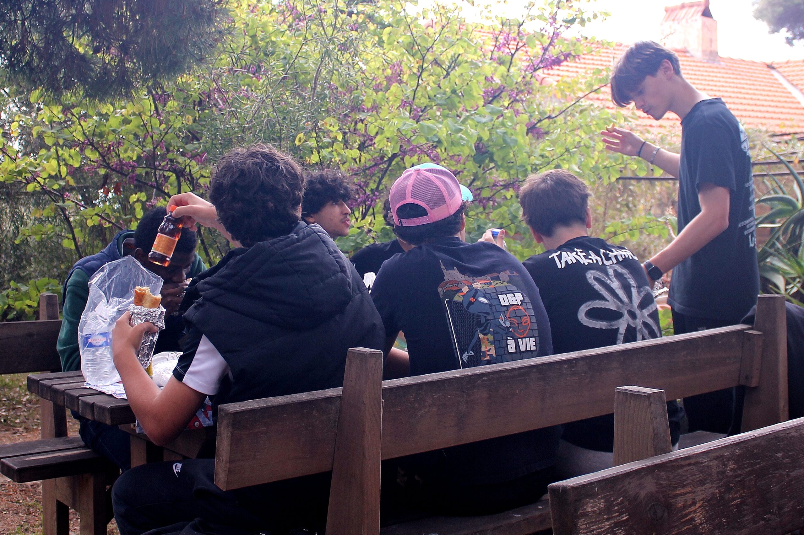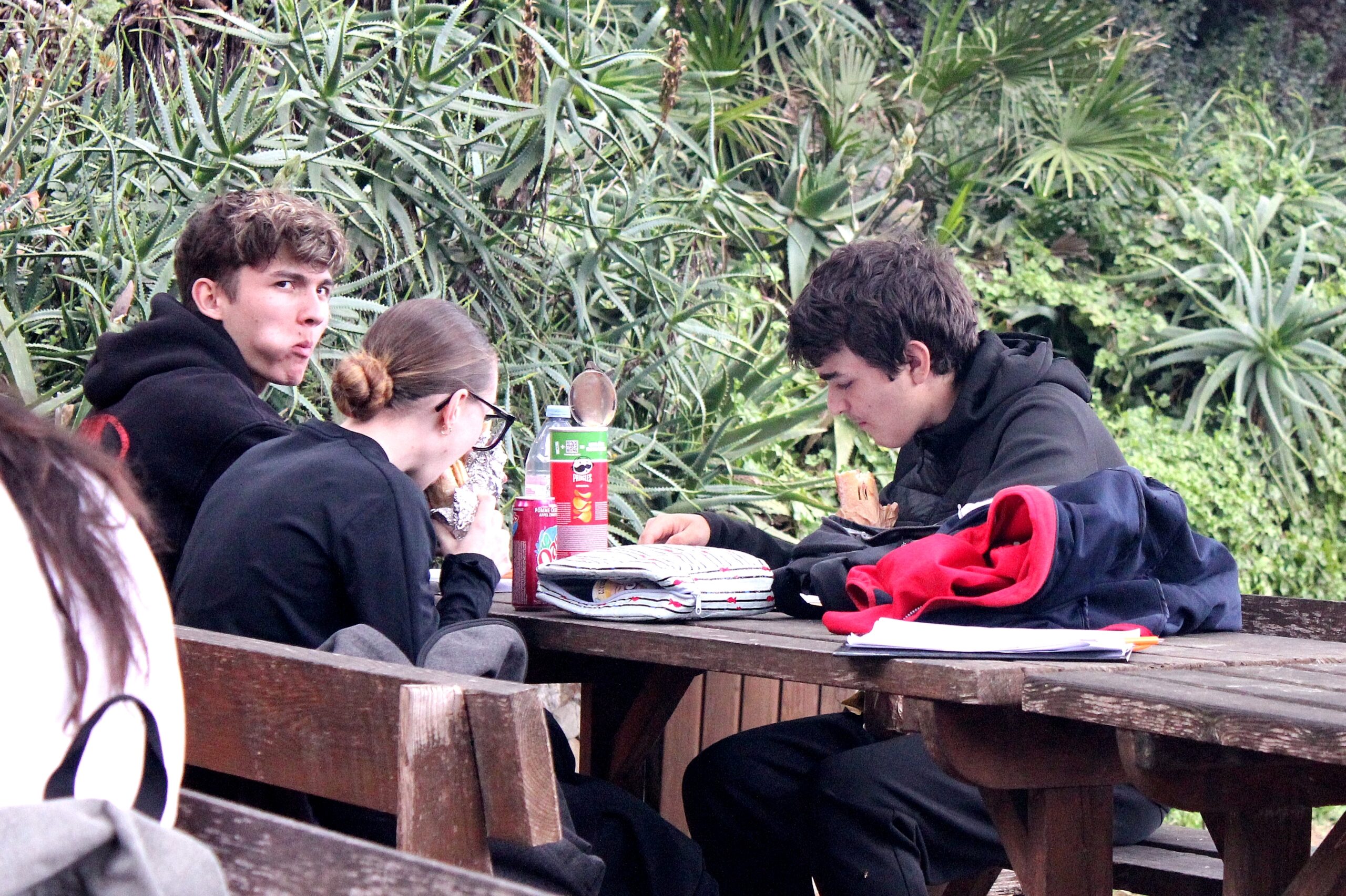 Puis, après un pique nique sous le sous la canopée, ce fut le moment de faire parler les roches aux Giardini Hanbury où plis, nummulites et roches carbonatées ont livré leurs secrets afin de reconstituer une partie de l’histoire géologique de notre secteur. Cette année encore, une belle surprise s’est offerte au groupe, puisque des élèves ESABAC du lycée APROSIO de Vintimille attendaient les visiteurs pour une visite explicative EN FRANÇAIS !!!! Merci à eux, ils ont impressionné les élèves ESABAC du Lycée Curie.