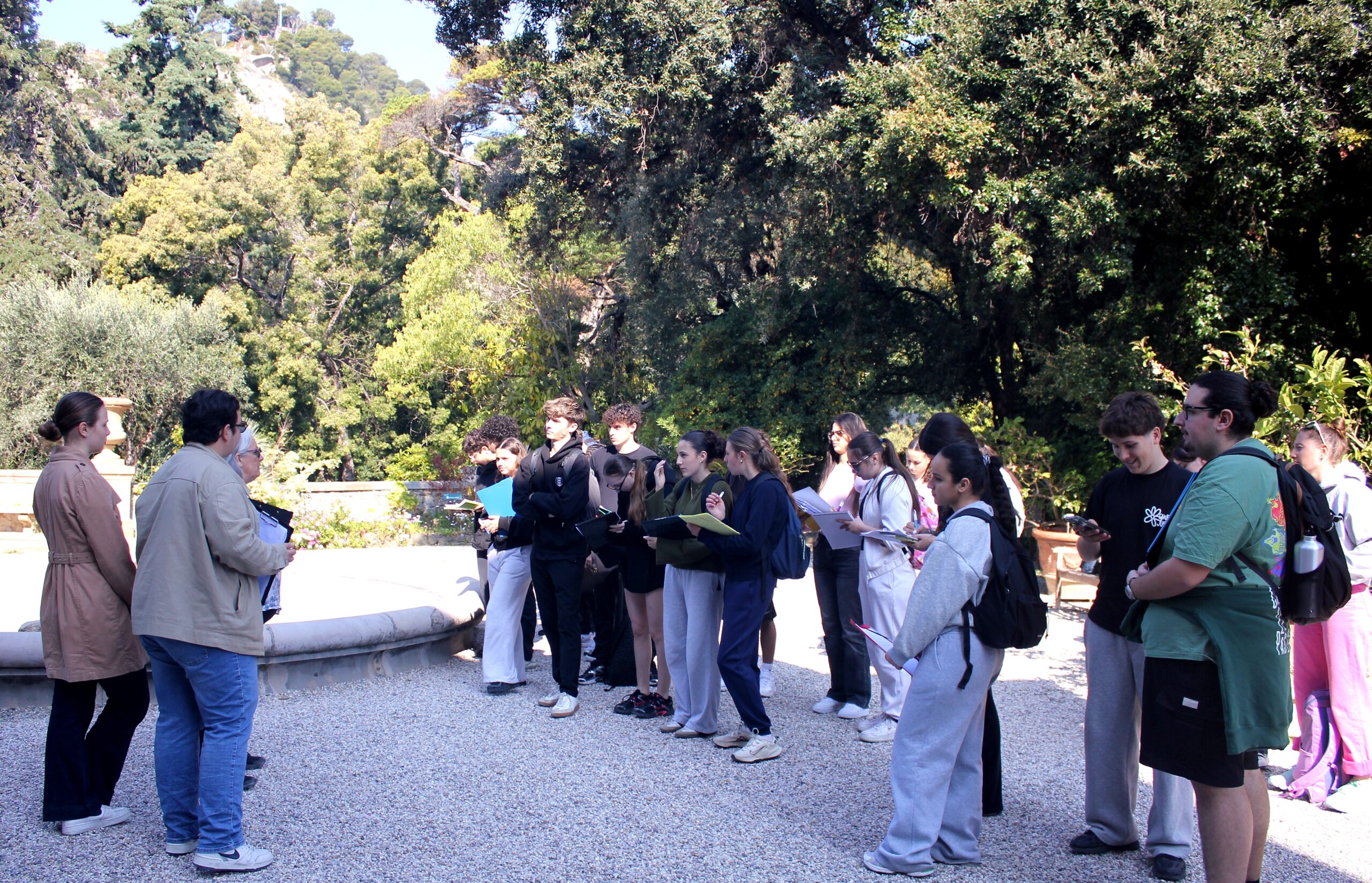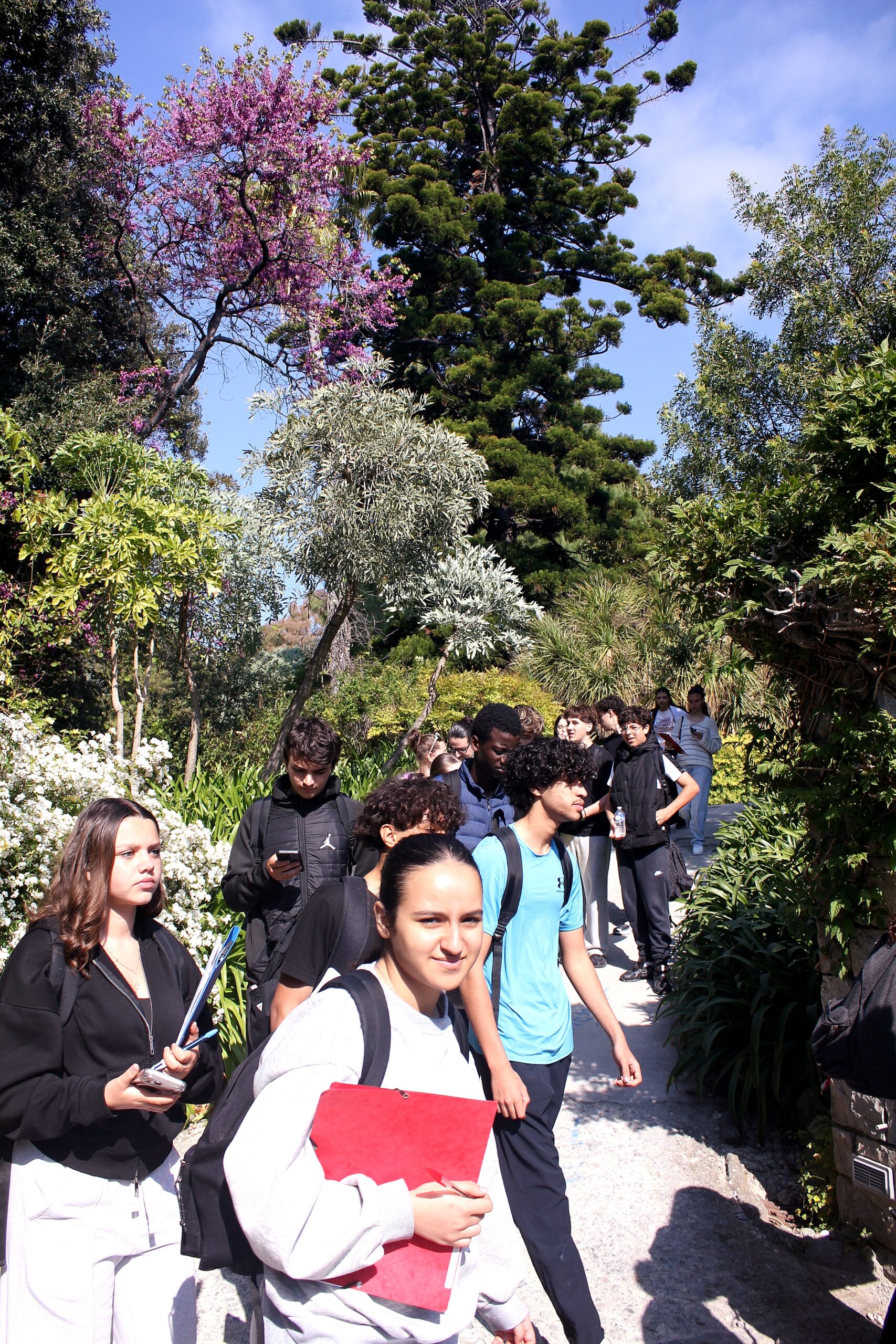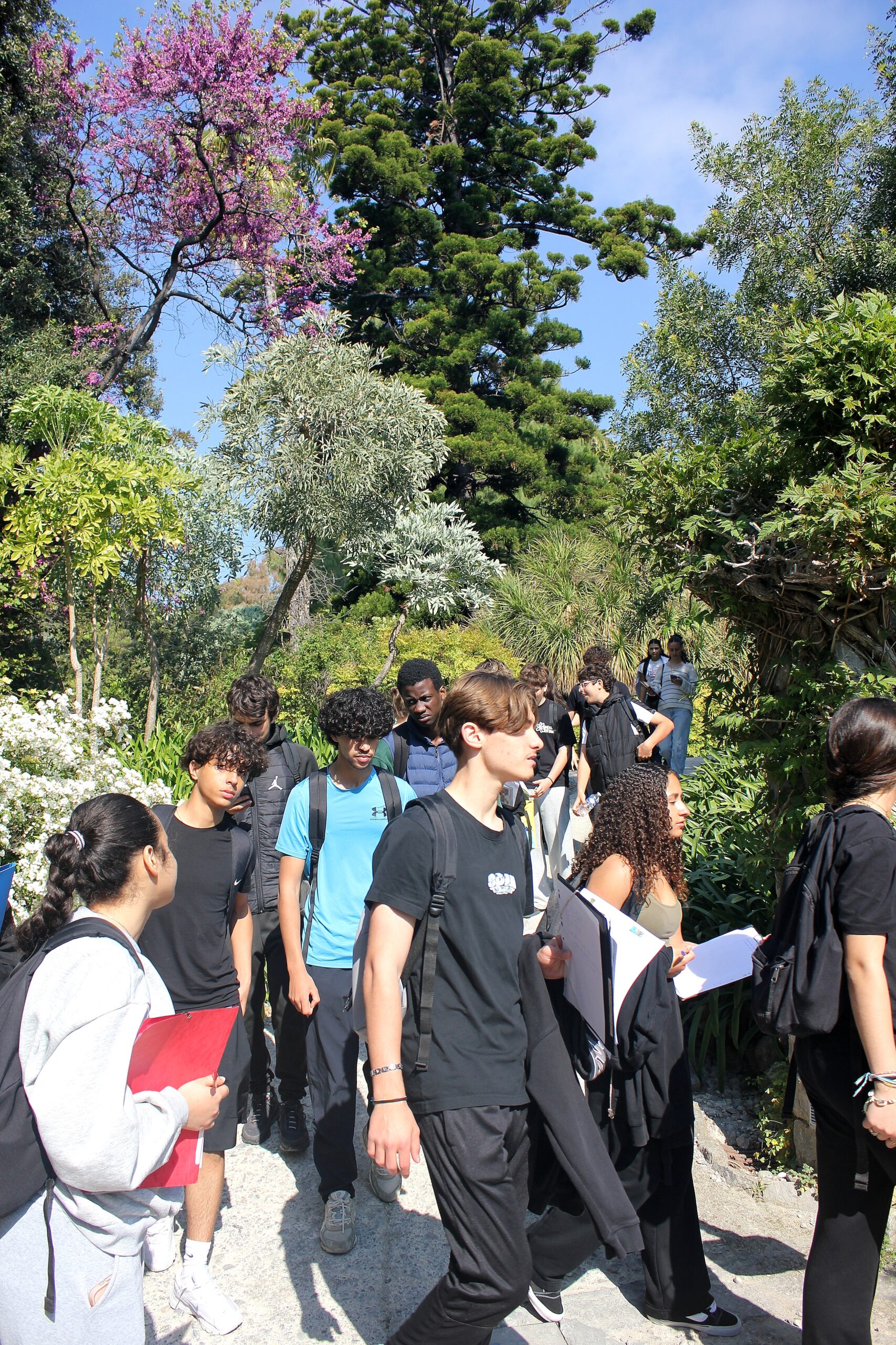 Après une explication du paysage géologique et botanique à Menton depuis le sentier de Sainte Agnès, des élèves de spécialité Sciences de la Vie et de la Terre en classe de Première Générale, se sont rendus aux Jardins Hanbury (en Italie) pour découvrir les services écosystémiques rendus par ce magnifique jardin patrimonial. Ce jardin a un rôle de conservatoire et met en avant la biodiversité de notre région.