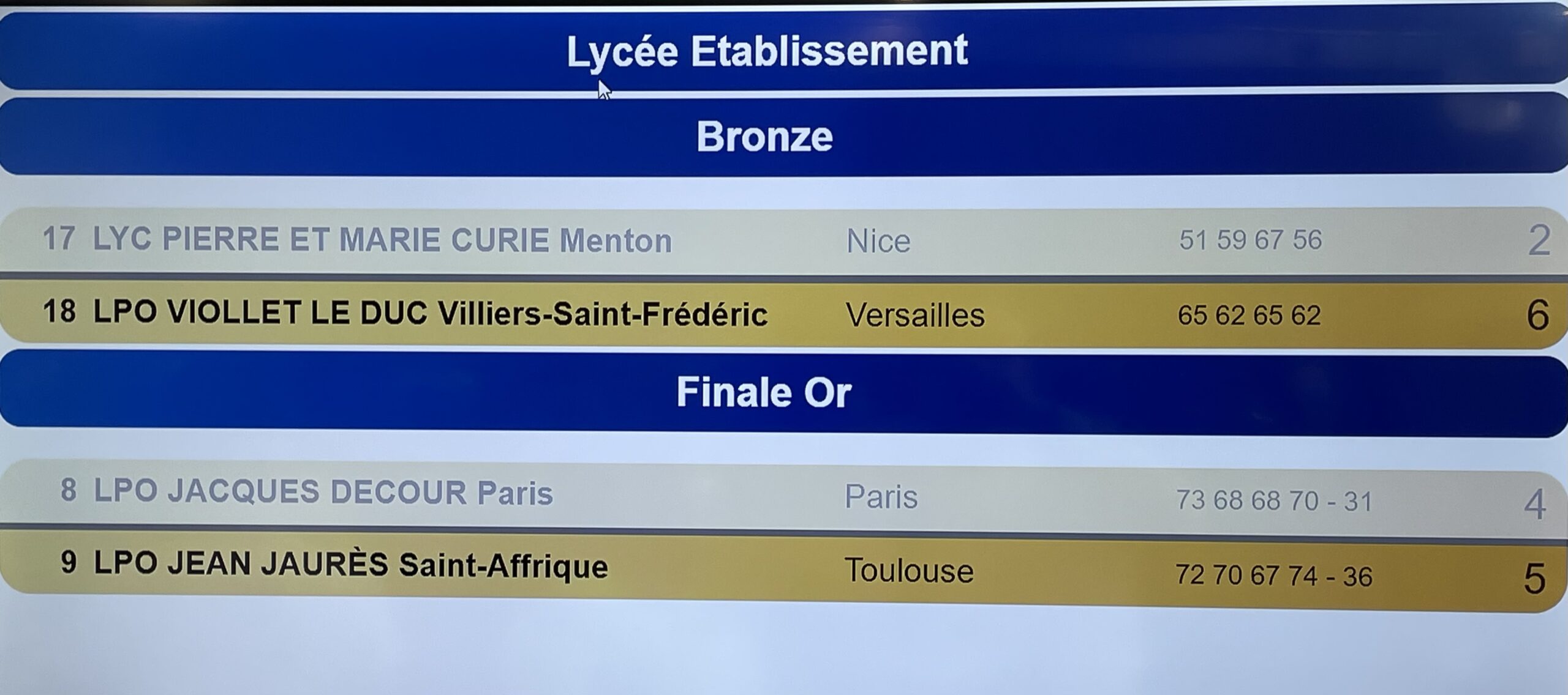 Voici quelques photos pour illustration (je vous laisse le soin de choisir). Notre équipe se classe quatrième dans notre catégorie (lycée mixte établissement) et porte bien haut les couleurs de notre Lycée.
